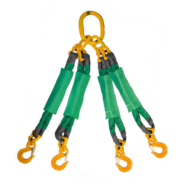 Se componen de accesorios de acero y eslingas planas o redondas, son útiles en maniobras con equipos con puntos de apoyo específicos, como maquinaria, mantenimiento de equipos industriales.